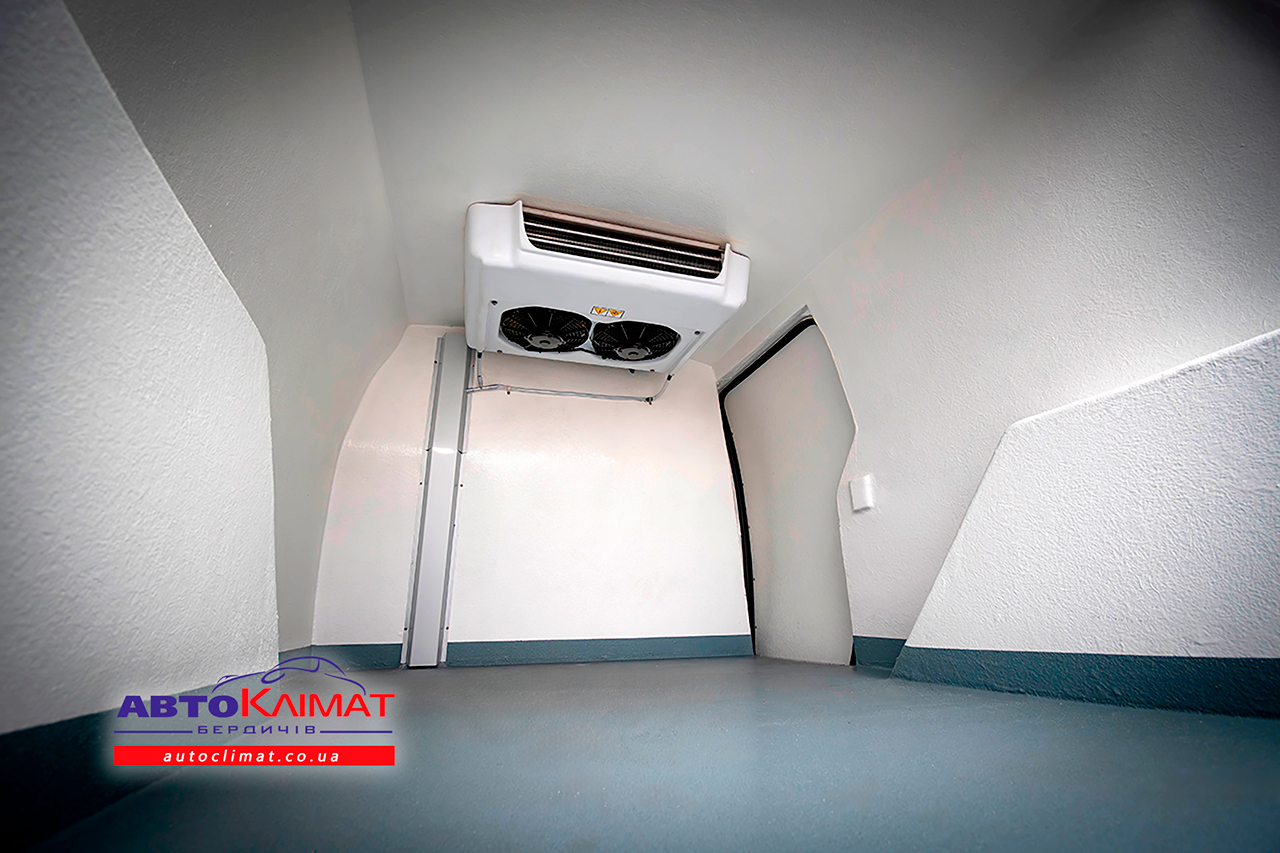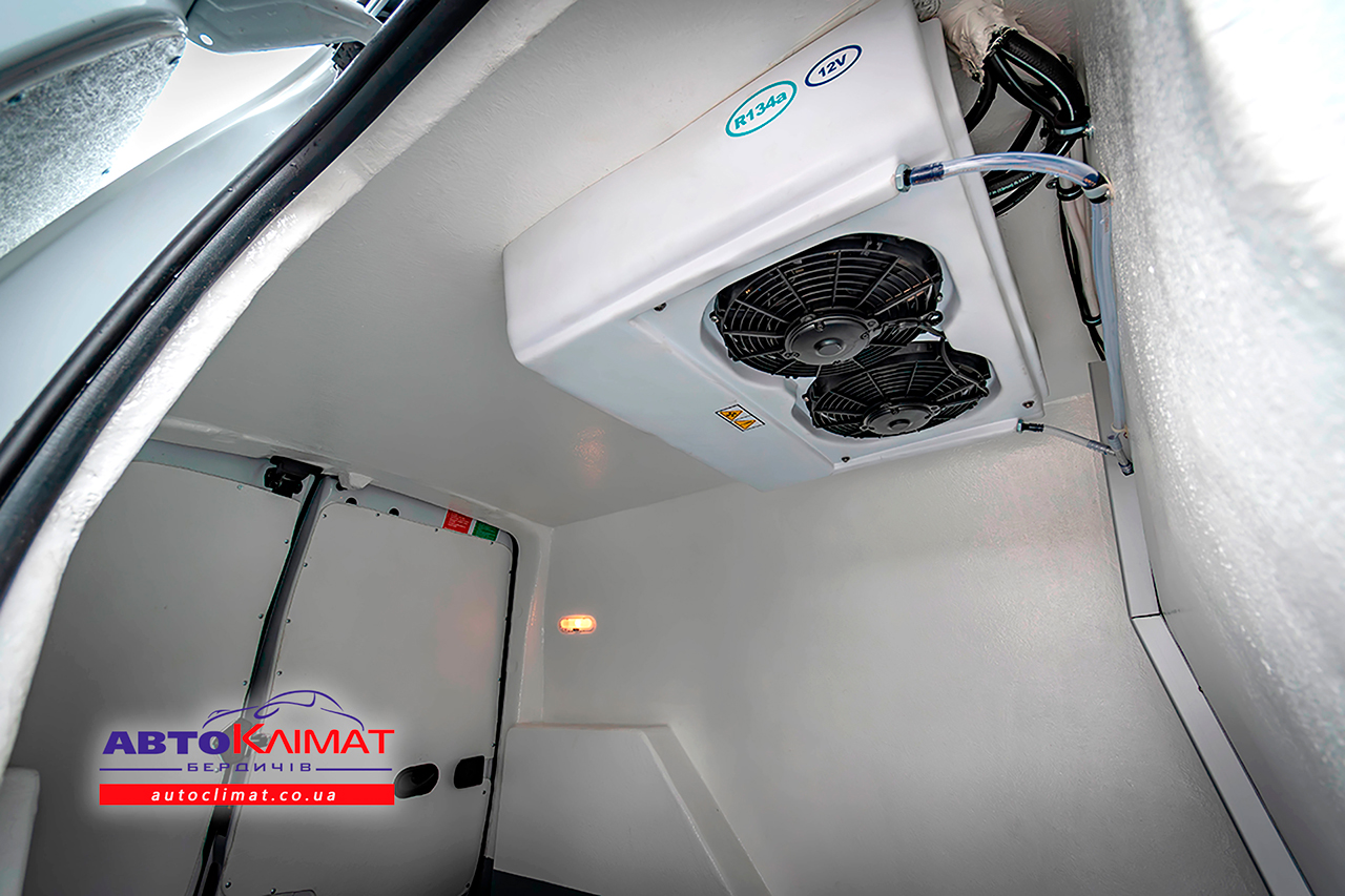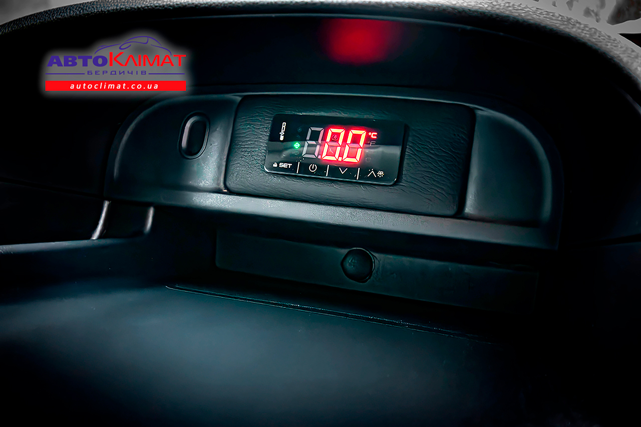 Електрична холодильна установка забезпечує температуру від 0 ºС до +10 ºС у термоізольованому кузові об’ємом до 10 м3. Температурний контролер EVCO італійського виробництва дозволяє зручно керувати холодильною установкою.