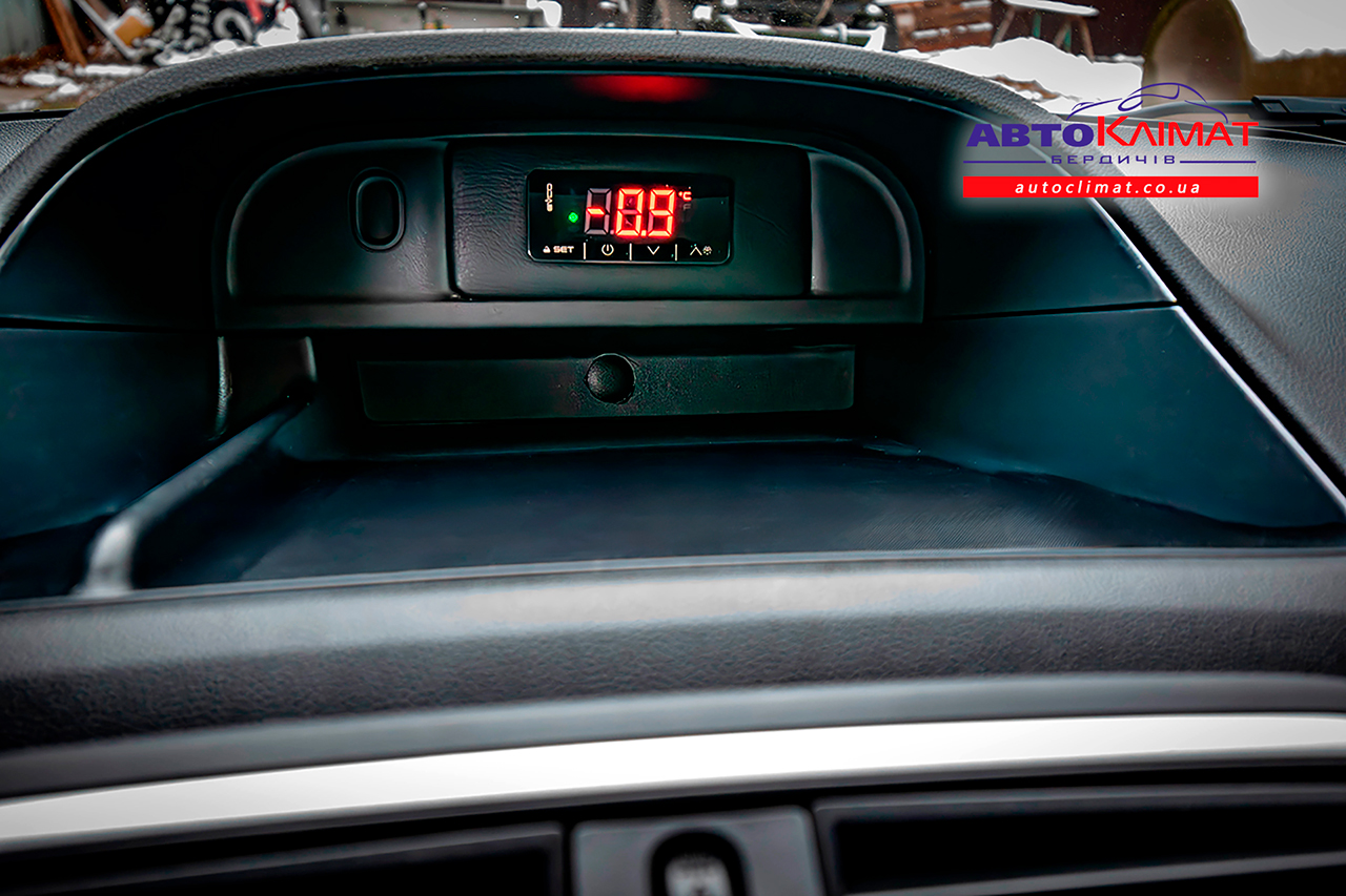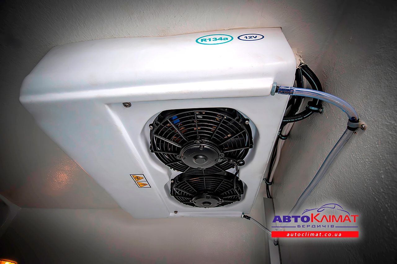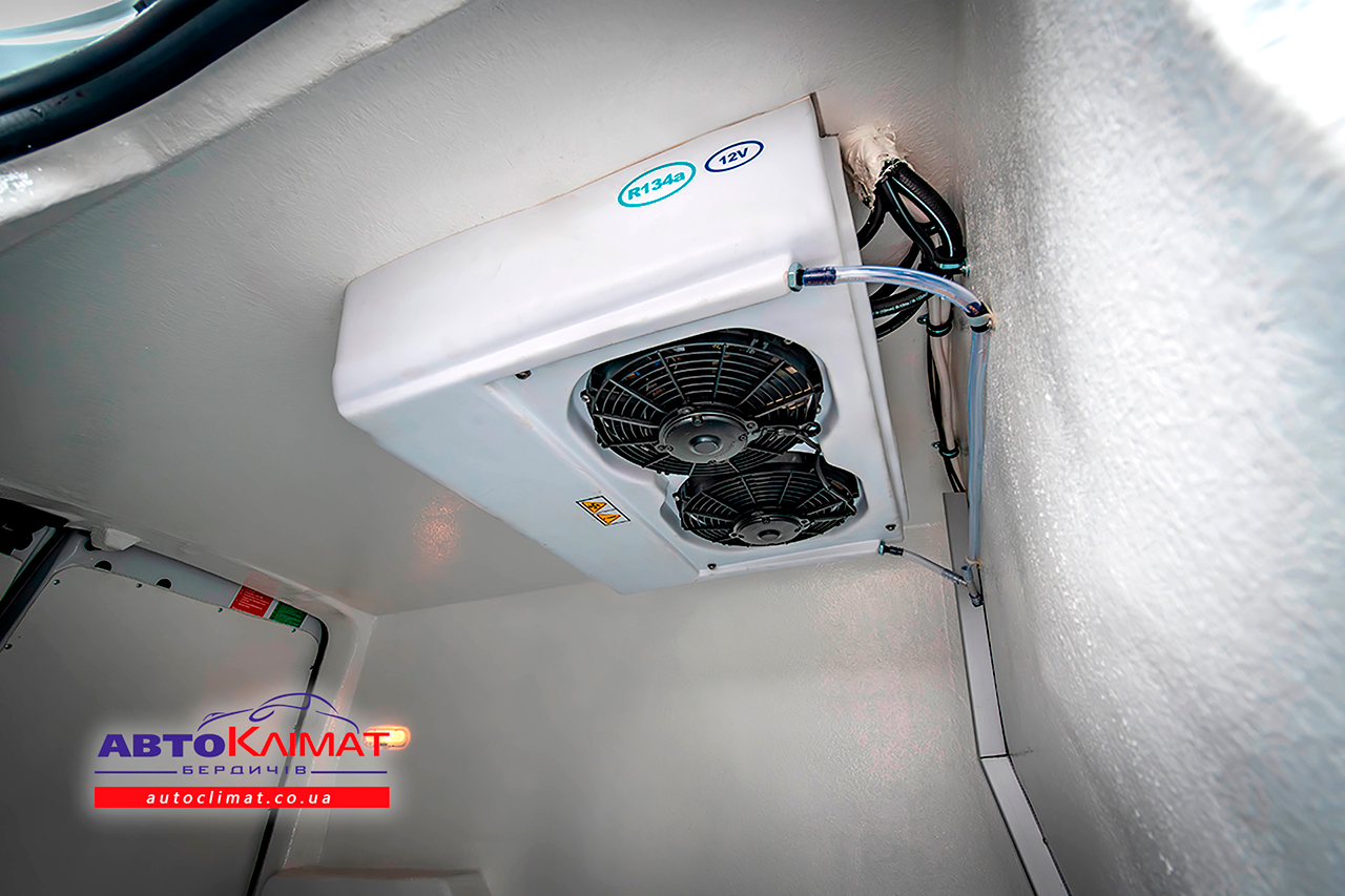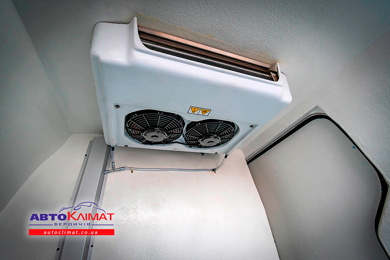 Електрична холодильна установка забезпечує температуру від 0 ºС до +10 ºС у термоізольованому кузові об’ємом до 10 м3. Температурний контролер EVCO італійського виробництва дозволяє зручно керувати холодильною установкою.